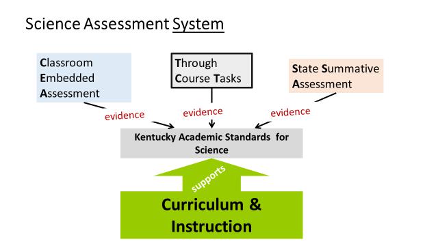 A collection of parts working independently of one another isn’t a system; it’s simply a collection of parts. The central idea of Kentucky’s science assessment system is that each component has a unique role in achieving the same end: providing useful information about different aspects of student learning in science. Often teachers are advised to create practice tests and to emulate summative practice at the classroom level. Unfortunately, this elicits only one kind of information, and in the case of summative assessment, only after all the opportunities for learning have ended. We hope that by providing access to quality formative assessment and freeing it from the pressures of accountability, teachers will have multiple and timely ways to learn what their students need.