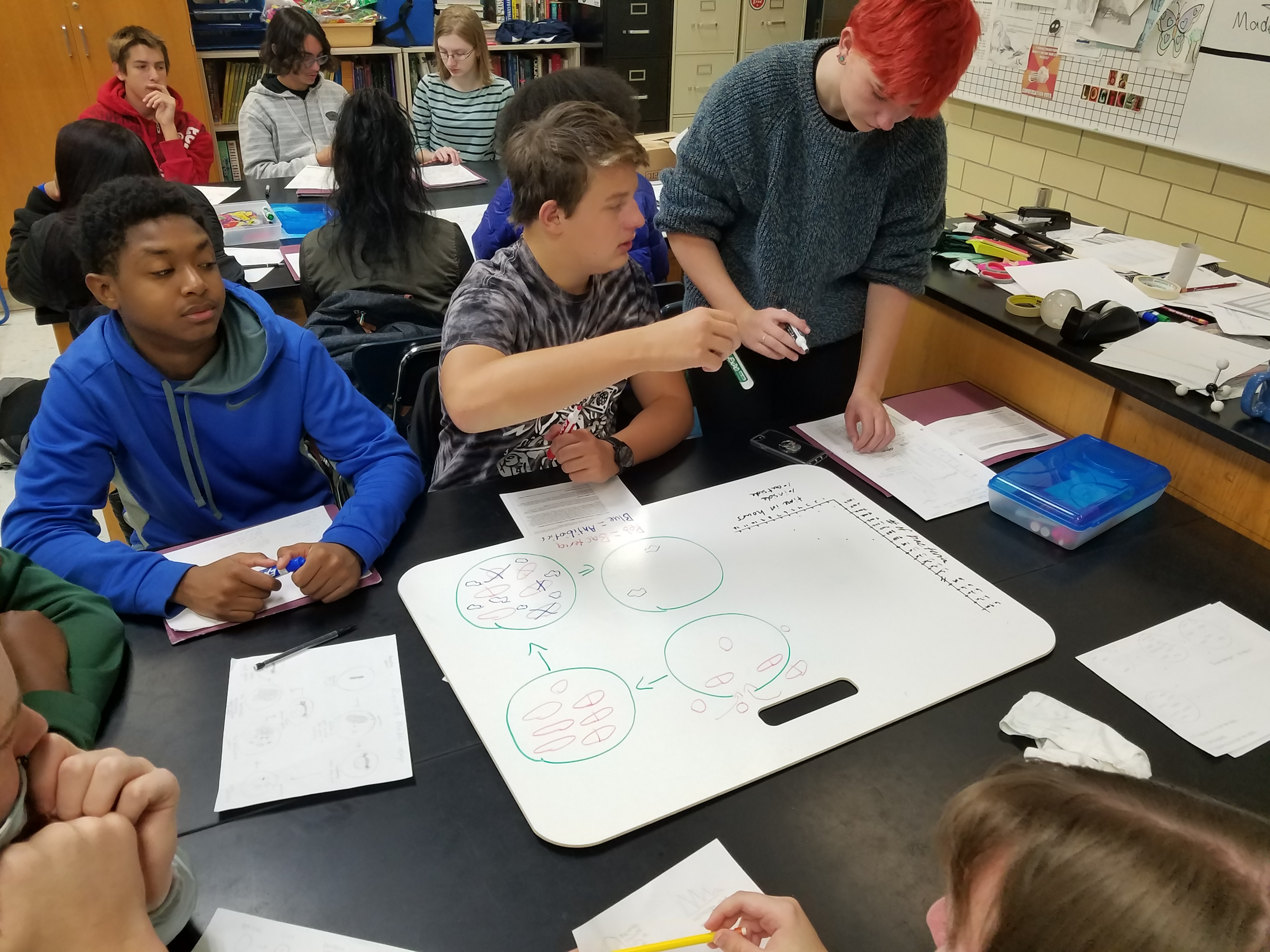 Why don’t antibiotics work like they used to? is an NGSS-aligned storyline developed by the Next Generation Science Storylines Project that focuses on natural selection and other mechanisms of evolution. Wayne Wright and I (Holly Hereau) teach science at Thurston High School in Redford, Michigan. We implemented this storyline with our 11th-grade honors biology and general biology classes in spring 2017 and again in fall 2017 with a revised version following professional development on how to support a classroom culture of “figuring out”.