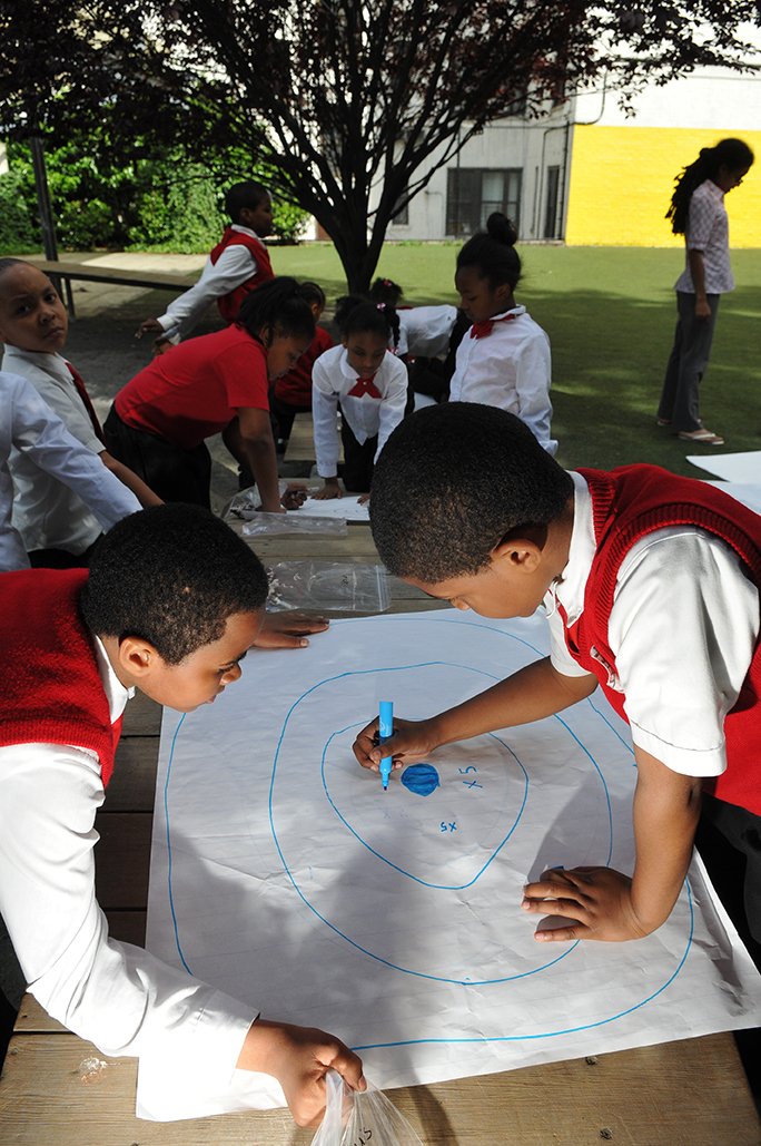 With this goal in mind, experts from ExpandED partnered with the New York Hall of Science (NYSCI), a local STEM-rich institution, to develop a program that would bring together elements supported by strong bodies of research to both captivate students’ imaginations and help them make critical links between their own life experiences and the science all around them. ExpandED hypothesized that layering three proven strategies—collaborative teaching, curricular bridging, and design-based learning—could produce a compounding effect that was greater than the sum of its parts.