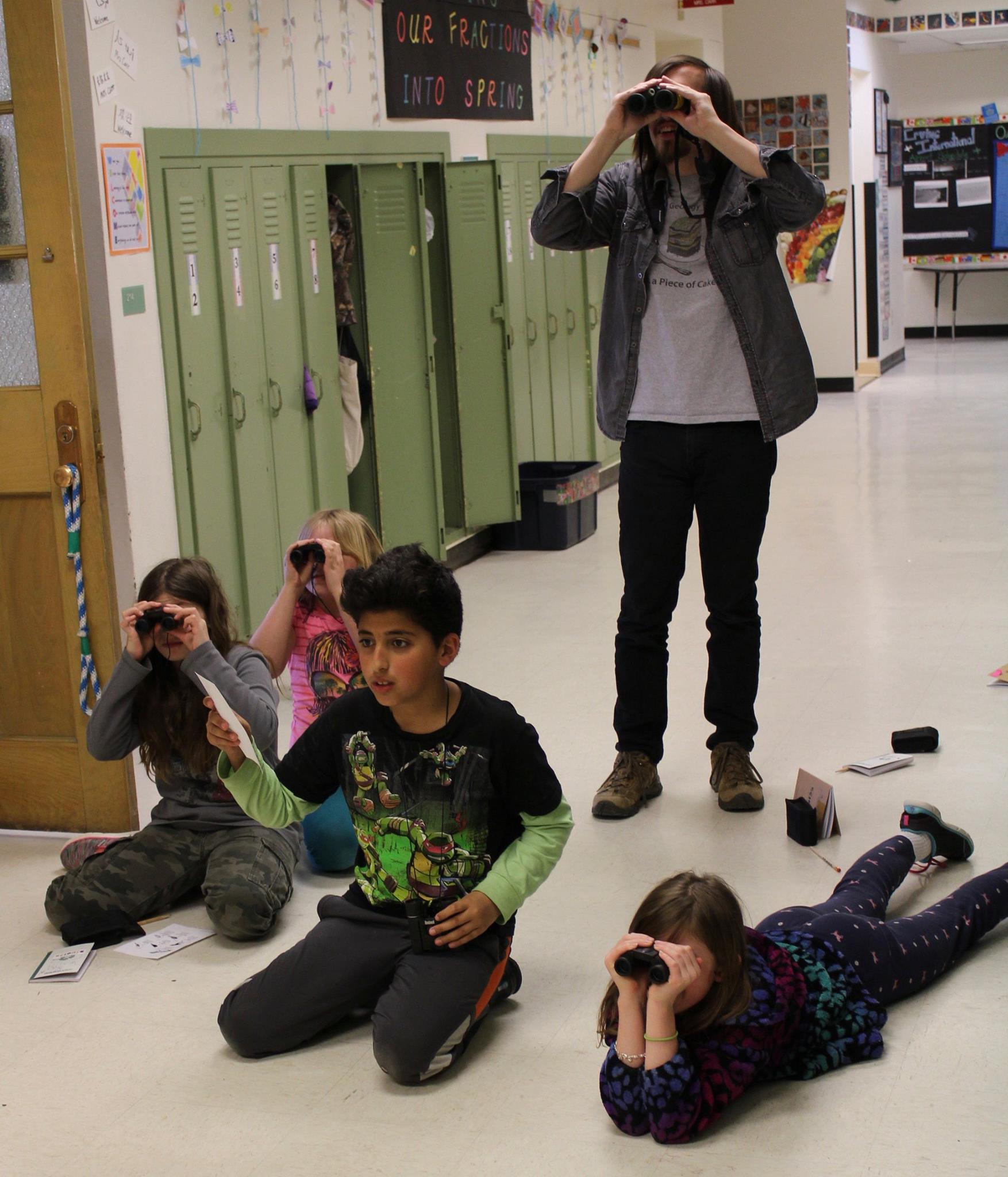In Fortine, Montana (population 169), resource teacher Dawn Black and seventh- and eighth-grade teacher Laurel Thomson recruited students to SAC via posters at school, fliers sent home to parents, and by word of mouth. Thomson said that students enjoyed the outdoor observations and the hands-on activities and games, including building birdhouses and feeders, learning to use binoculars, and creating to scale chalk drawings of birds like California condors with a nine foot wingspan. She also said that when severe winter weather hampered outdoor bug collection activities, SAC members took to their 100-year-old school’s dusty basement and their bus barn to seek arthropods and collect and test samples of sawdust from under a pellet stove, dirt from under floorboards, and spiderweb debris.