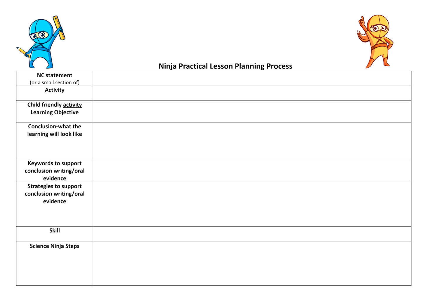 The planning form has proven to be popular; it reminds the teachers about what to include when planning and to think about the strategies and resources they will use to make their practical lessons successful. During coaching, we actively demonstrated how we have used the form to help plan an activity.