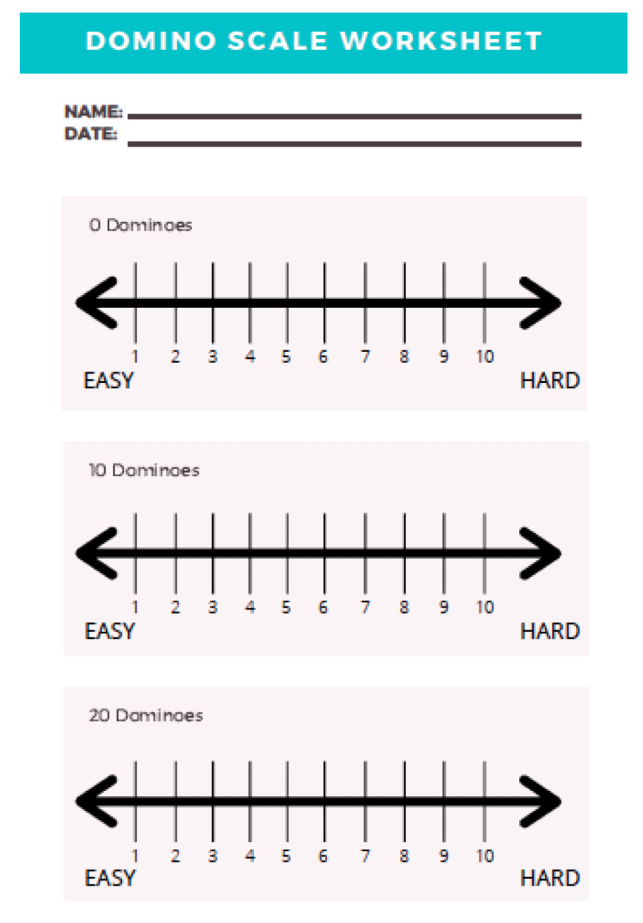 We have students explore the materials for a few minutes focusing on how adding or subtracting dominoes affects pulling the basket. While students explore, we ask questions such as: “What did you feel when you changed the number of dominoes?” (History). We then direct their attention to the graphic organizer (Figure 4). We explain that they will pull the basket with a certain number of dominoes inside, then after they pull the basket, they will mark on the spectrum line how easy or hard it was to pull the basket. If it was really easy, they will mark it on the far left side, and if it was really hard, they would mark it on the far right side. Students then start the investigation.