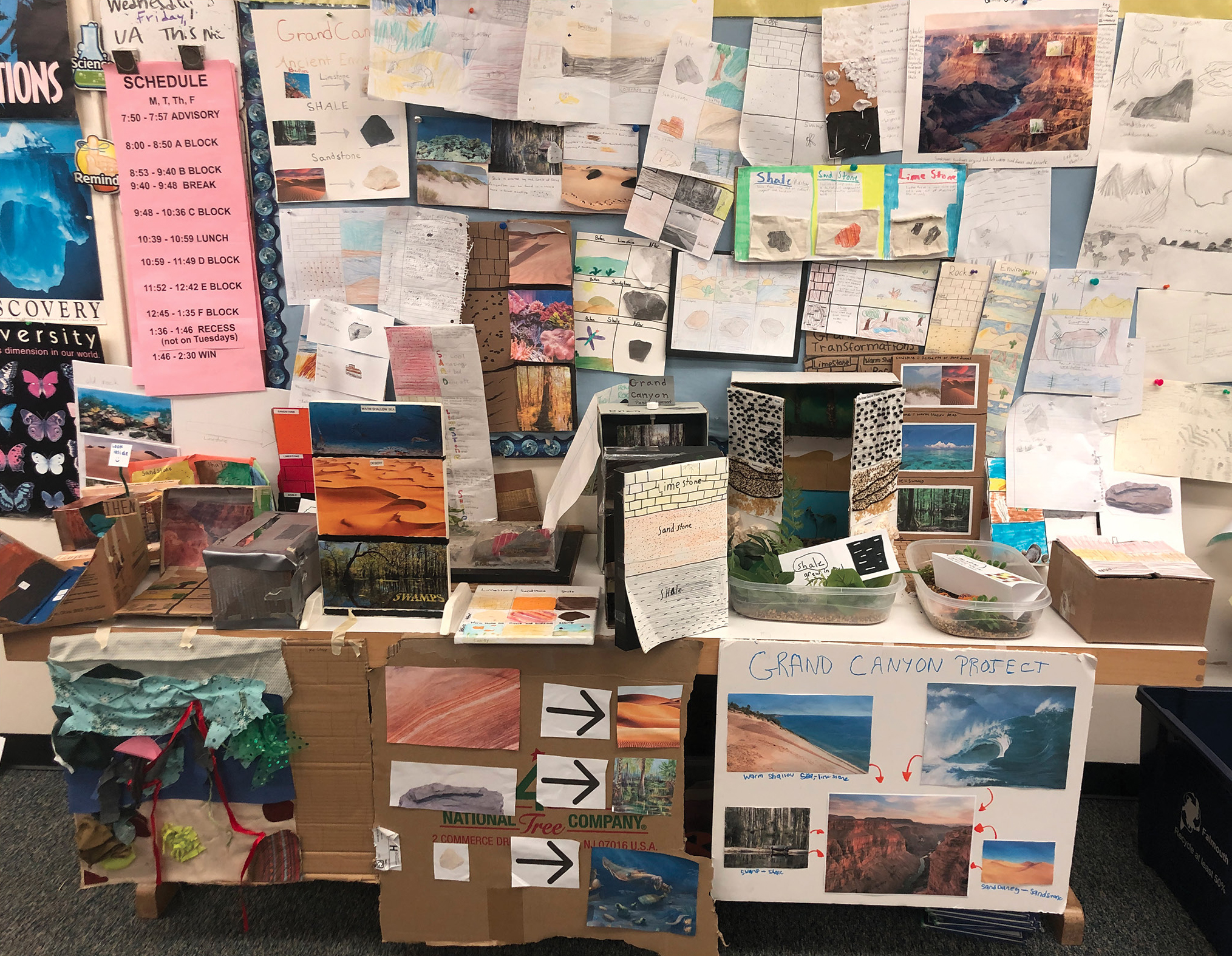 Student models of the Grand Canyon’s layers where supplies were provided by the teacher.