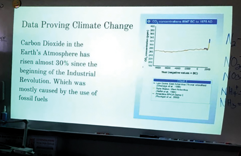 Students are asked to apply their new knowledge of the carbon cycle and anthropogenic inputs that interfere with the cycle by creating a presentation suitable to present to our city council that answers the following questions:
