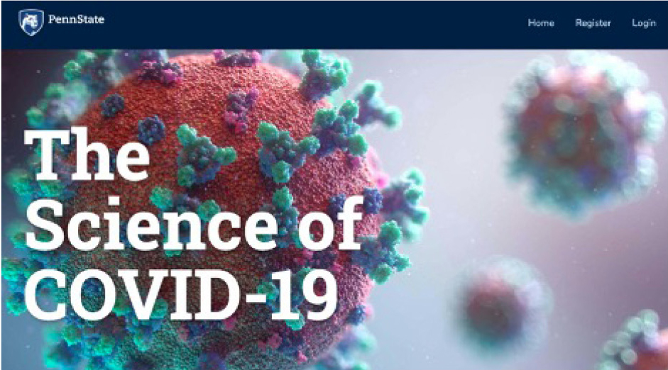 We, a group of science educators at the Center for Science and the Schools (CSATS) at Penn State University, formed a team with experts in science and instructional design to write, pilot, and revise a free online course for high school teachers to use with their students called The Science of COVID-19 (Figure 1). We did this to create instructional materials that teachers could teach in remote or hybrid situations, especially for schools without resources to pay for curriculum. We also wanted to highlight the authentic practices scientists are currently using to learn more about SARS-CoV-2 and COVID-19 and to tie this work directly to disciplinary content teachers need to teach in their classes.