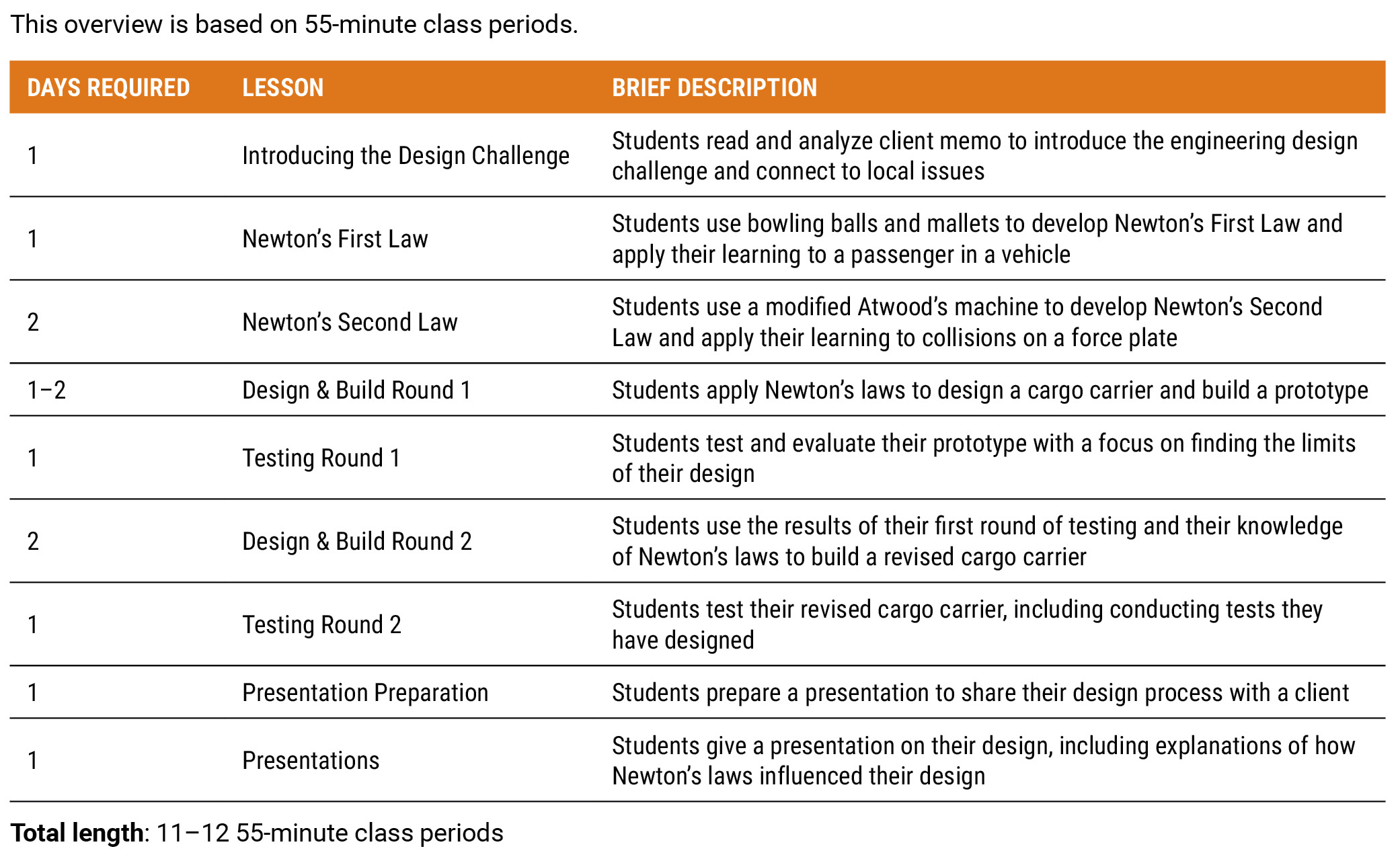 In the Next Generation Science Standards (NGSS Lead States 2013), science teachers are challenged to make meaningful links between science and engineering. Engineering design not only provides opportunities to integrate engineering and science but also makes learning more authentic and relevant by grounding the learning in a meaningful context (Kelley and Knowles 2016). This article describes a unit developed for our ninth-grade physical science classes centered on an engineering design challenge in which students learn about forces to develop a scale model of a cargo carrier to protect an egg in a crash.